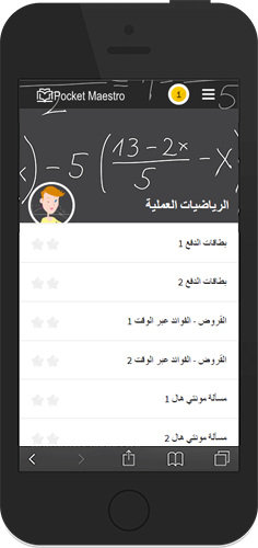 مع Pocket Maestro ، لا تقتصر على تعلم أي شيء في أي وقت. لدينا بالفعل مجموعة واسعة من المواضيع المعروضة مع المزيد في الطريق الطريق. تعلم الاسبانية اثناء ركوب القطار للعمل. اصقل معلوماتك عن الرياضيات أثناء الغداء. أو تعلم مهارات التصوير الفوتوغرافي في عطلة نهاية الأسبوع. فكر في ذلك على أنه بوفيه معرفة تتعلم كل ما يمكنك معرفته.