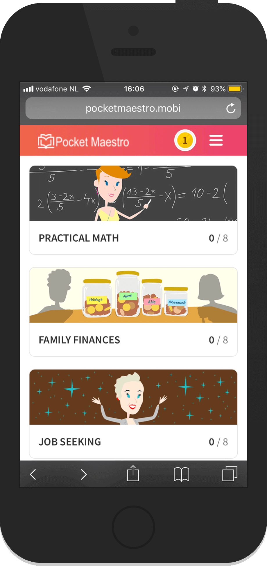 Avec PocketMaestro, vous n'êtes pas limité à apprendre une seule chose à un moment donné. Nous avons déjà un large éventail de sujets proposés et d'autres sont en cours d'élaboration. Apprenez l'espagnol pendant le trajet en train pour vous rendre au travail; rafraîchissez vos connaissances en mathématiques pendant le déjeuner; ou découvrez vos compétences en photographie pendant le week-end. Pensez-y comme un buffet de connaissances à volonté où vous pouvez revenir à volonté.